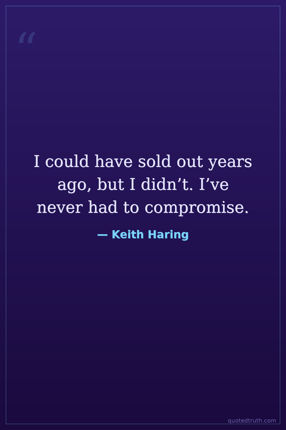 I could have sold out years ago, but I didn’t. I’ve never had to compromise.