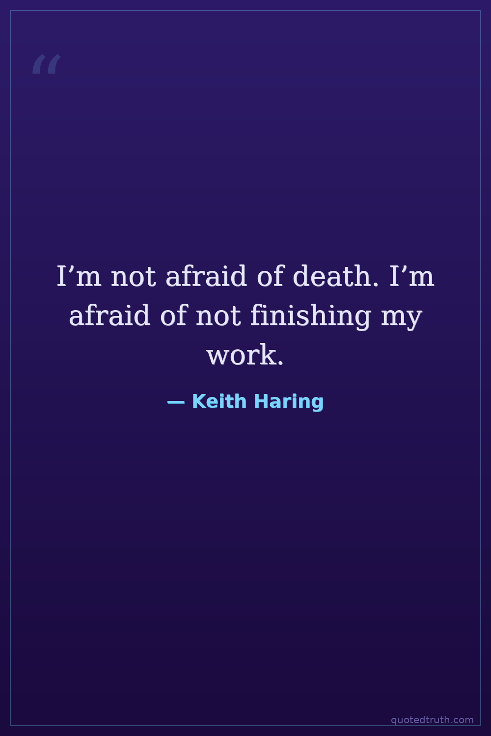 I’m not afraid of death. I’m afraid of not finishing my work.