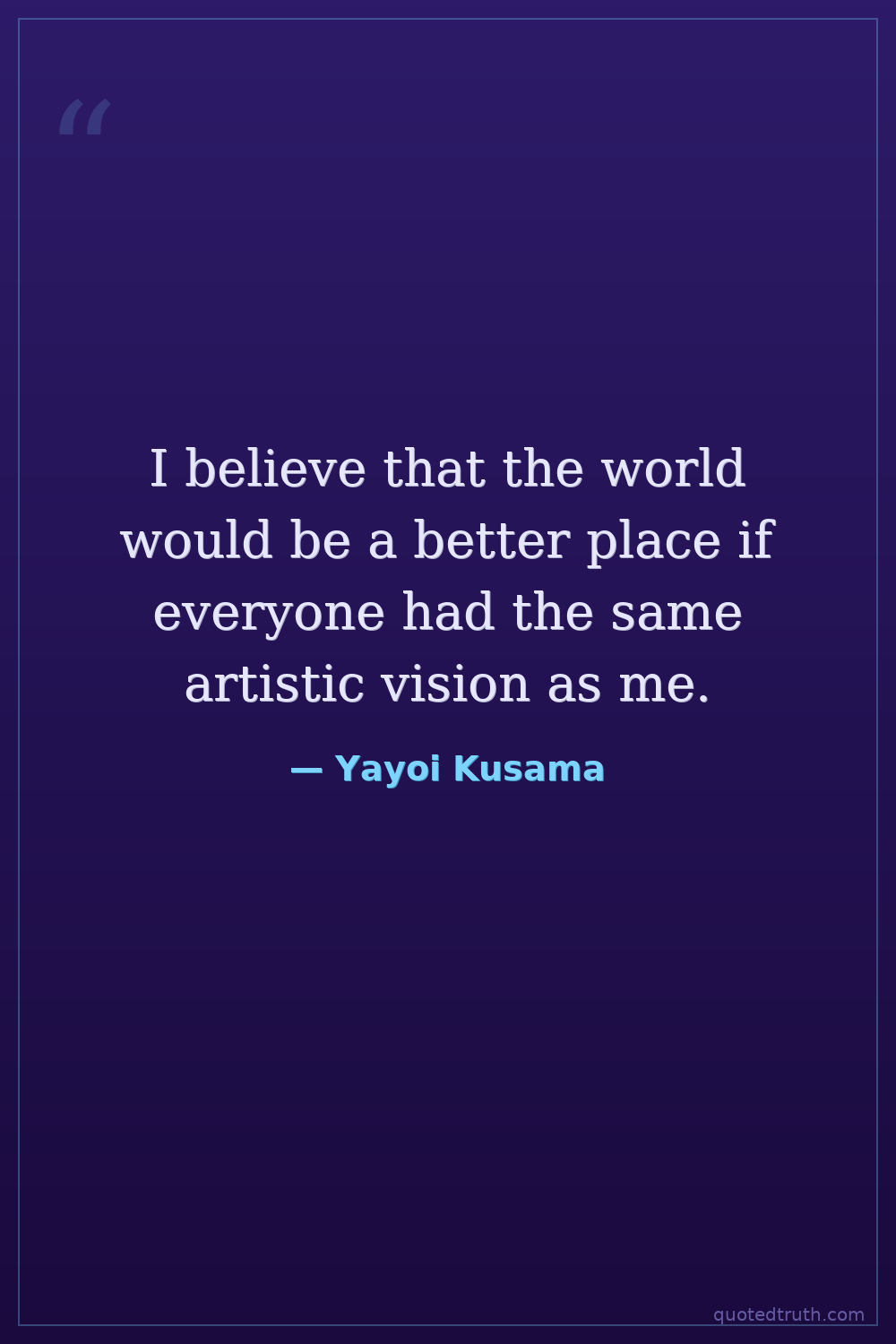 I believe that the world would be a better place if everyone had the same artistic vision as me.