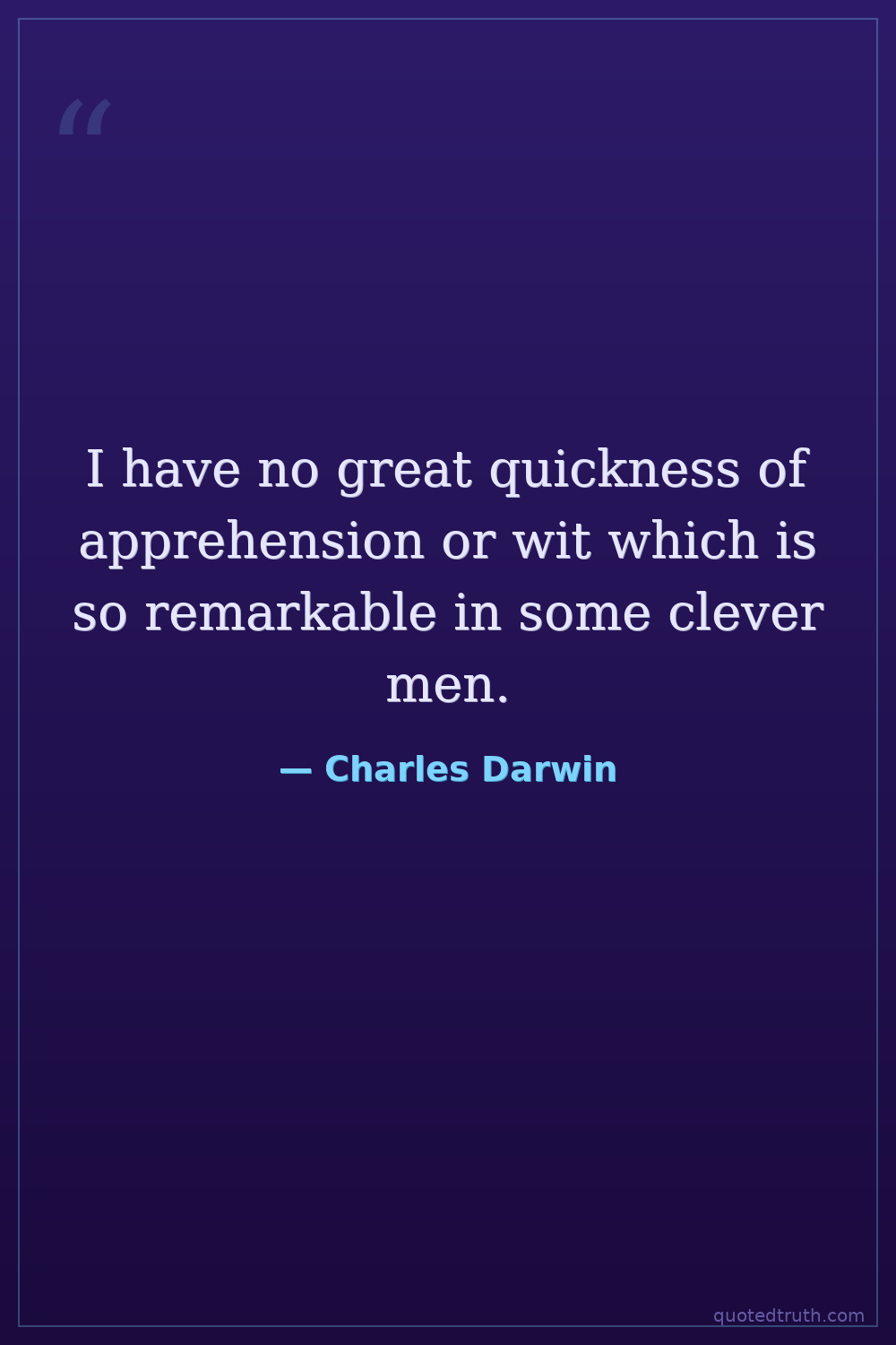 I have no great quickness of apprehension or wit which is so remarkable in some clever men.