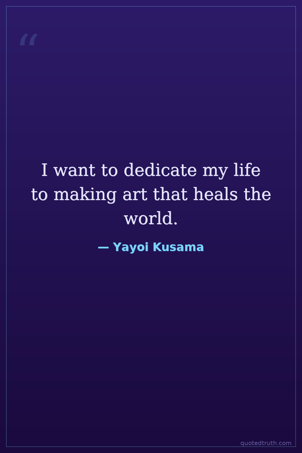 I want to dedicate my life to making art that heals the world.
