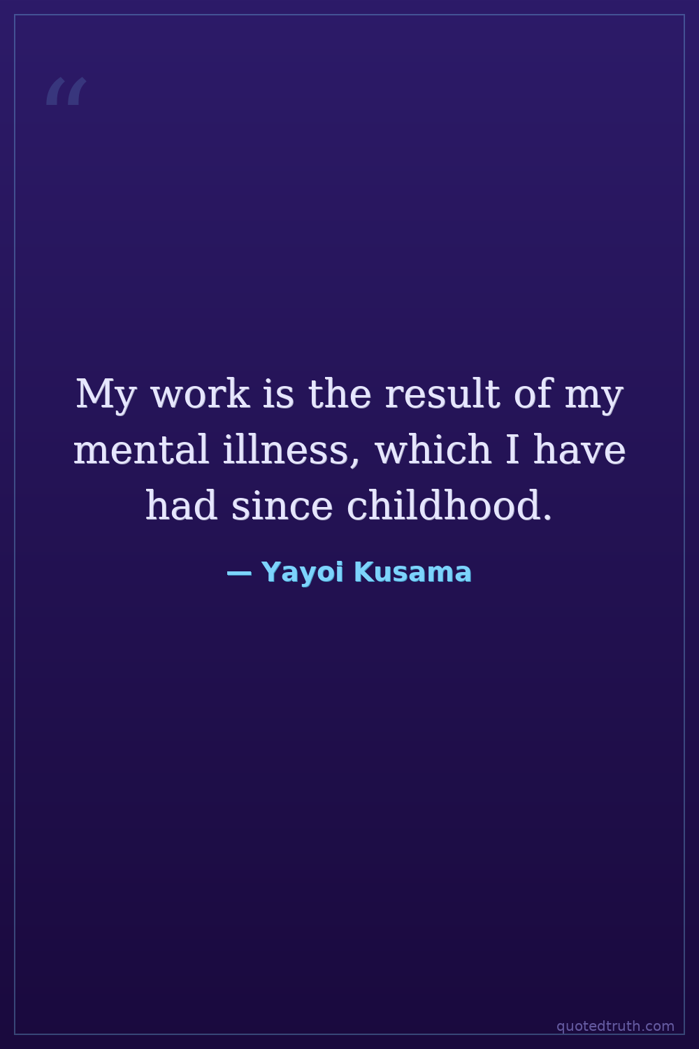 My work is the result of my mental illness, which I have had since childhood.
