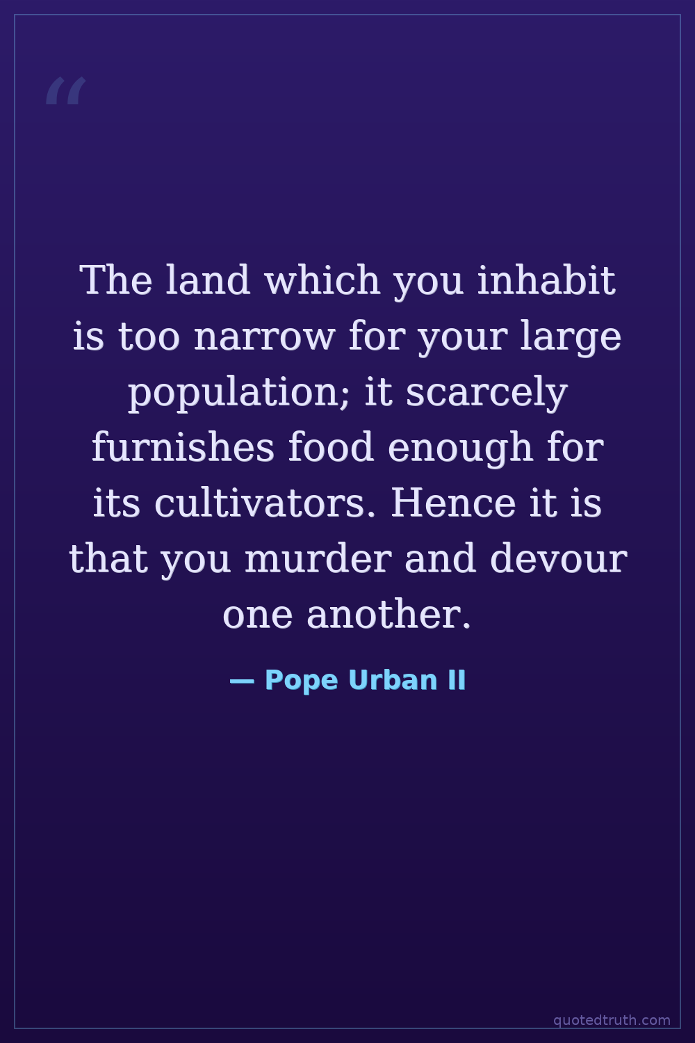 The land which you inhabit is too narrow for your large population; it scarcely furnishes food enough for its cultivators. Hence it is that you murder and devour one another.