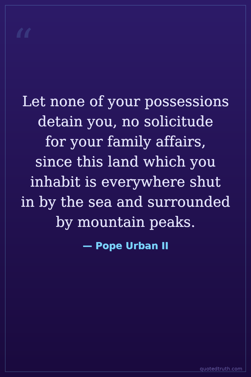 Let none of your possessions detain you, no solicitude for your family affairs, since this land which you inhabit is everywhere shut in by the sea and surrounded by mountain peaks.