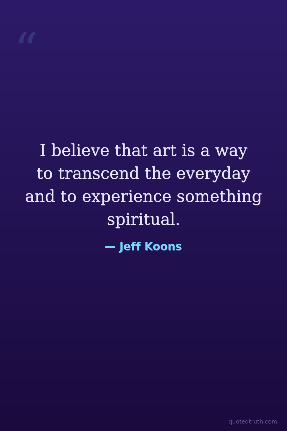 I believe that art is a way to transcend the everyday and to experience something spiritual.