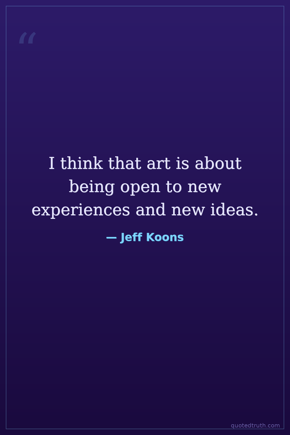 I think that art is about being open to new experiences and new ideas.