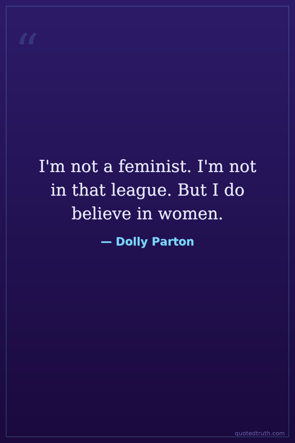 I'm not a feminist. I'm not in that league. But I do believe in women.