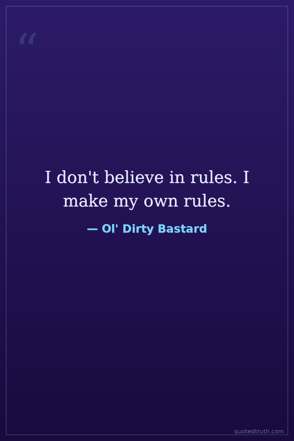 I don't believe in rules. I make my own rules.