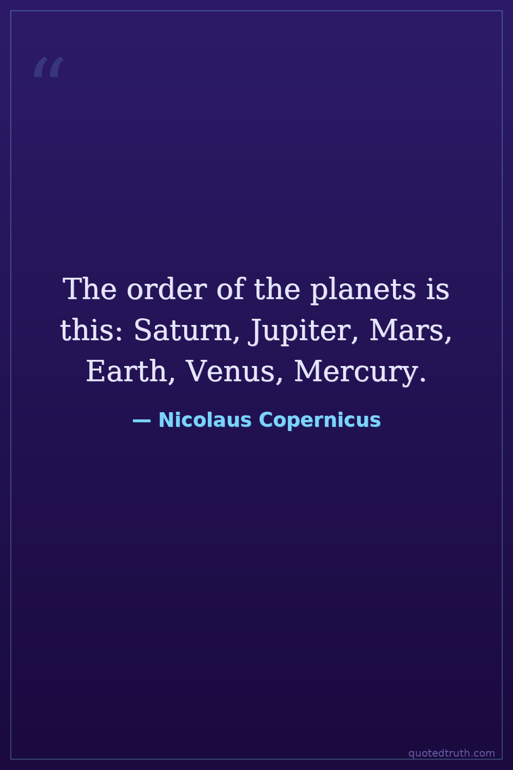 The order of the planets is this: Saturn, Jupiter, Mars, Earth, Venus, Mercury.
