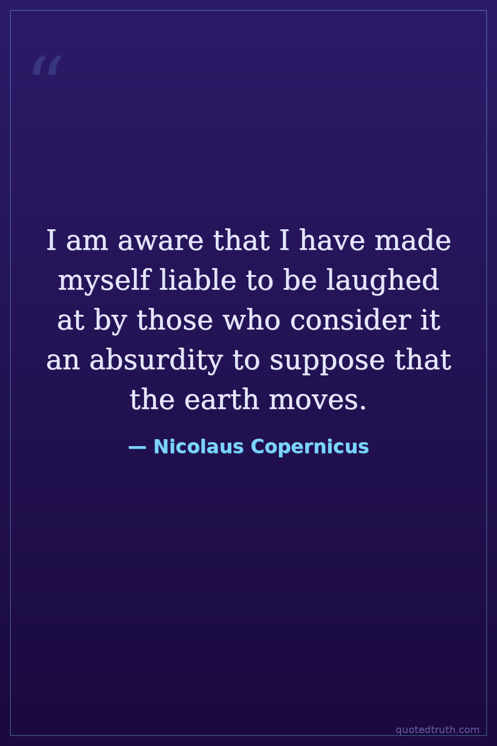 I am aware that I have made myself liable to be laughed at by those who consider it an absurdity to suppose that the earth moves.