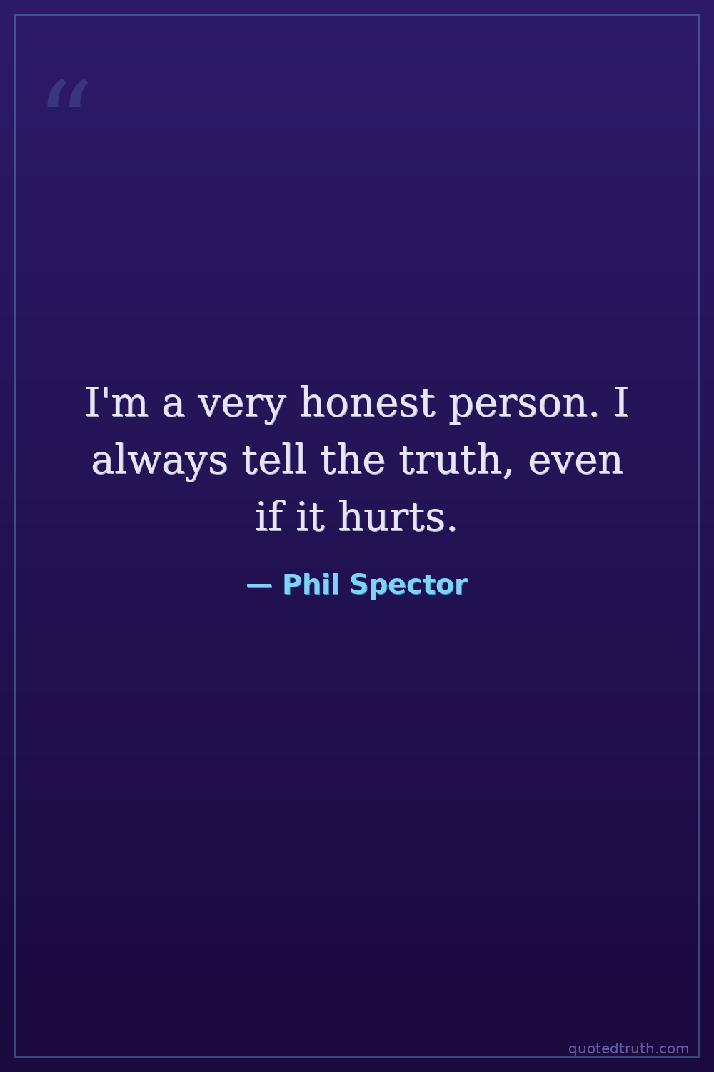I'm a very honest person. I always tell the truth, even if it hurts.