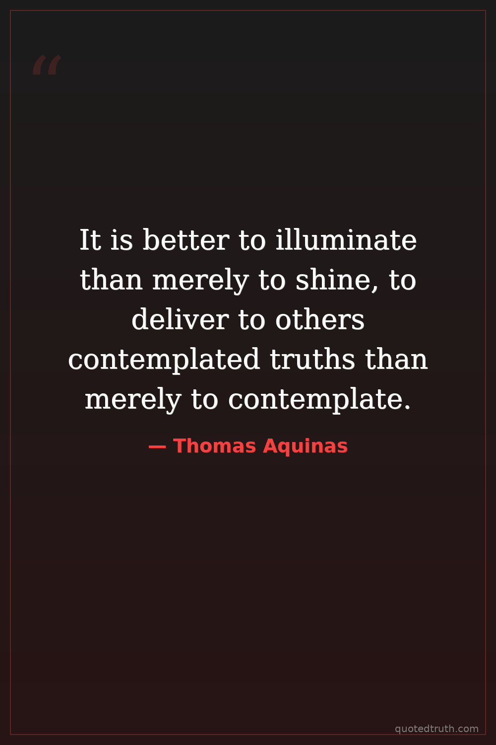 It is better to illuminate than merely to shine, to deliver to others contemplated truths than merely to contemplate.