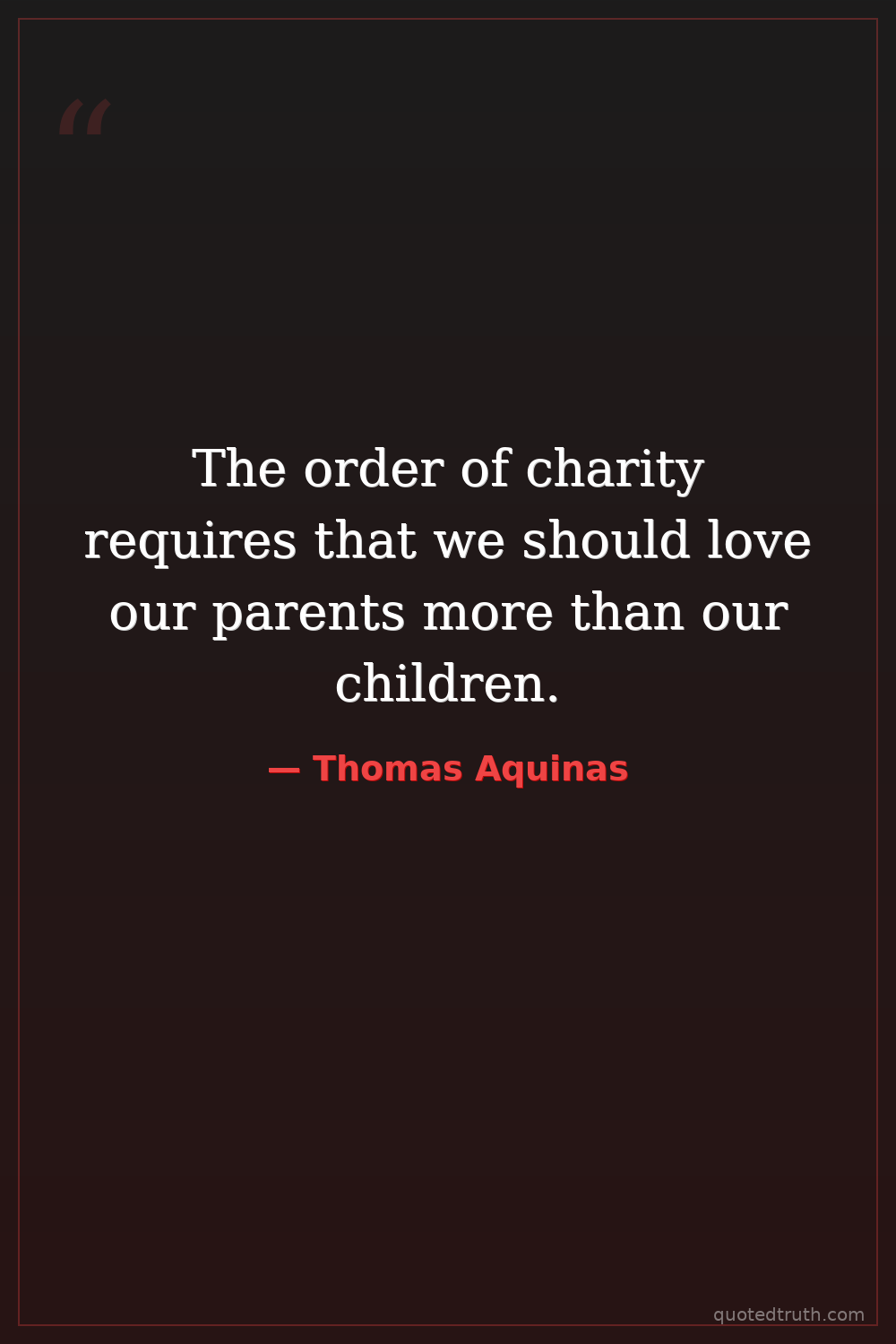 The order of charity requires that we should love our parents more than our children.