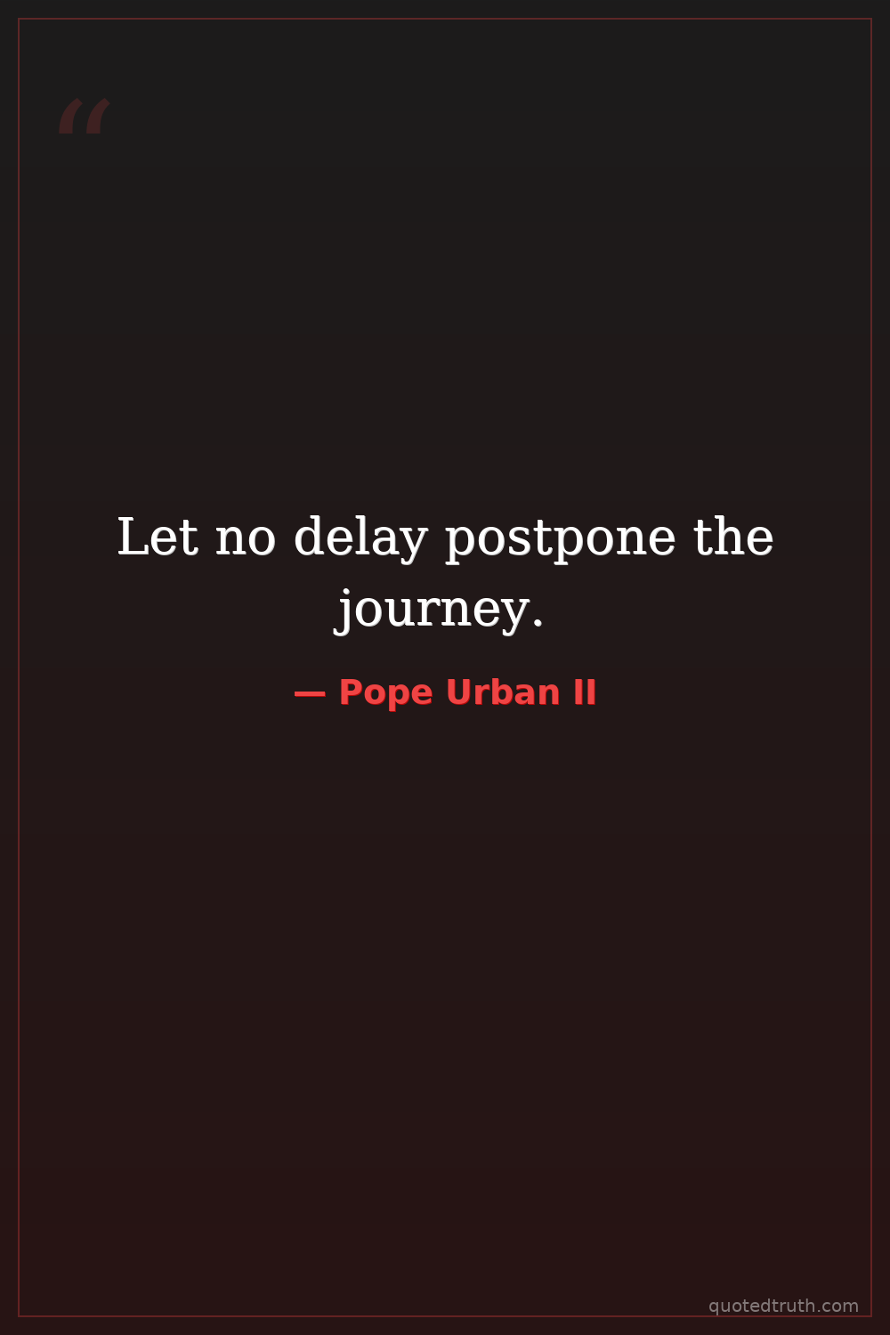 Let no delay postpone the journey.