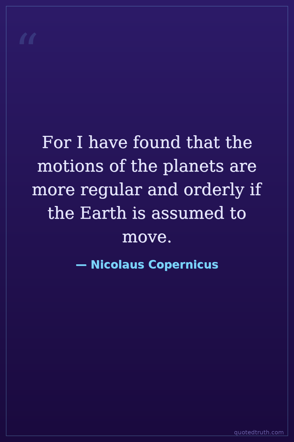 For I have found that the motions of the planets are more regular and orderly if the Earth is assumed to move.