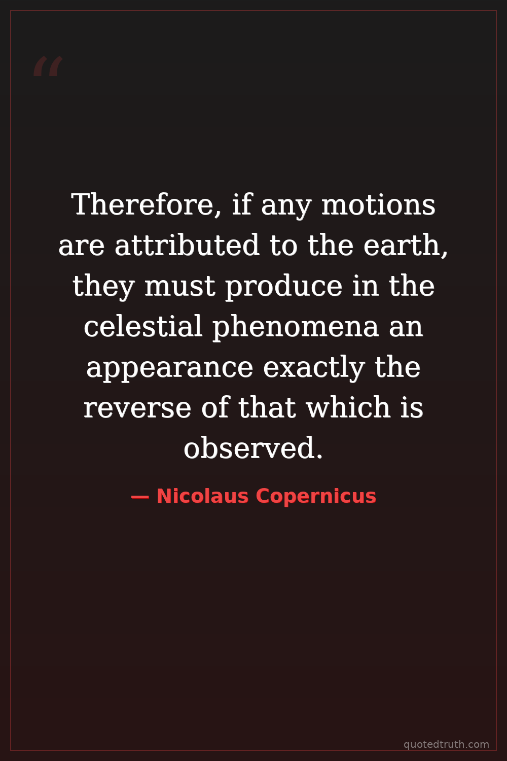 Therefore, if any motions are attributed to the earth, they must produce in the celestial phenomena an appearance exactly the reverse of that which is observed.