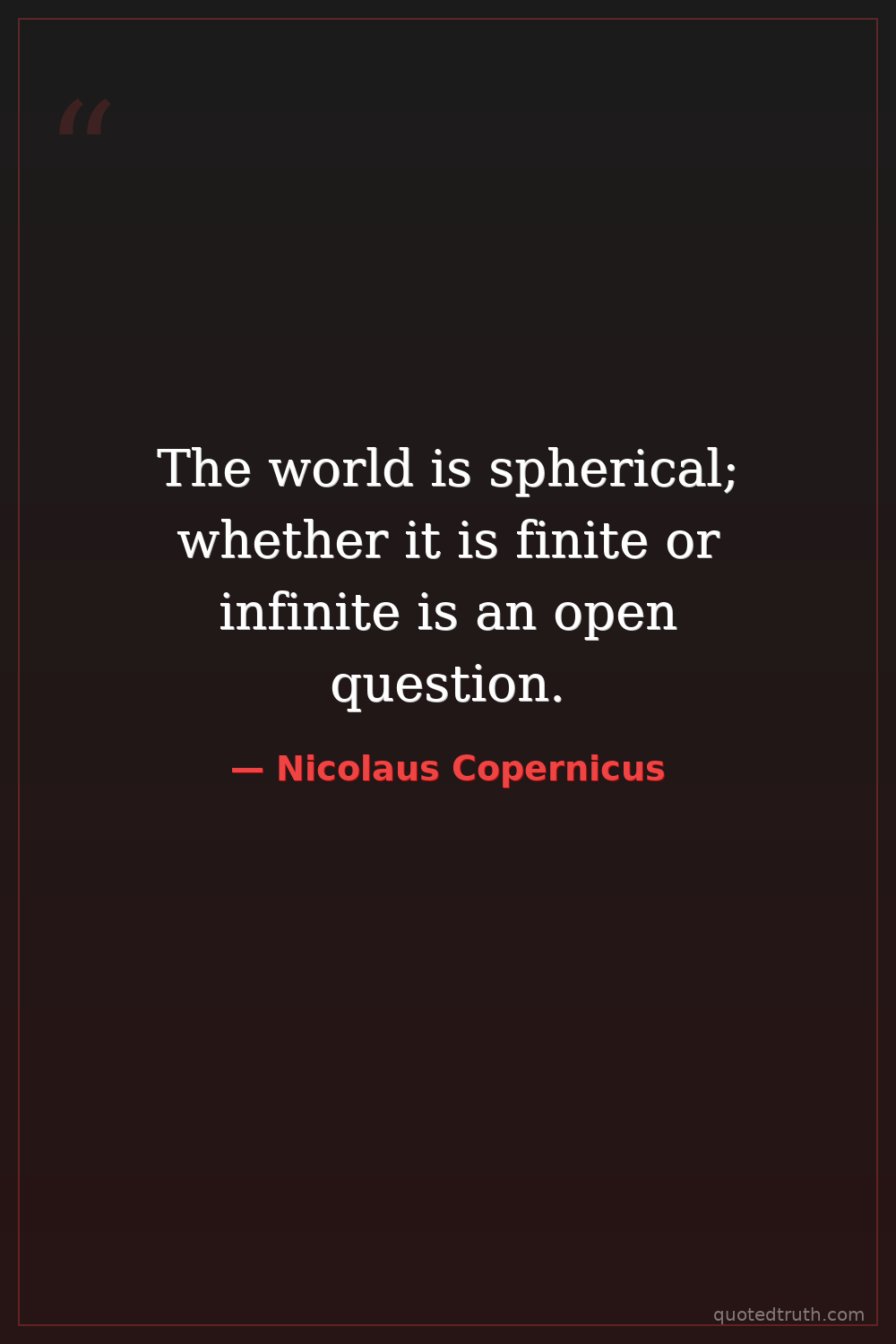 From 'De Revolutionibus Orbium Coelestium', Book I, Chapter 1. He states it's spherical, but doesn't definitively answer finite/infinite.