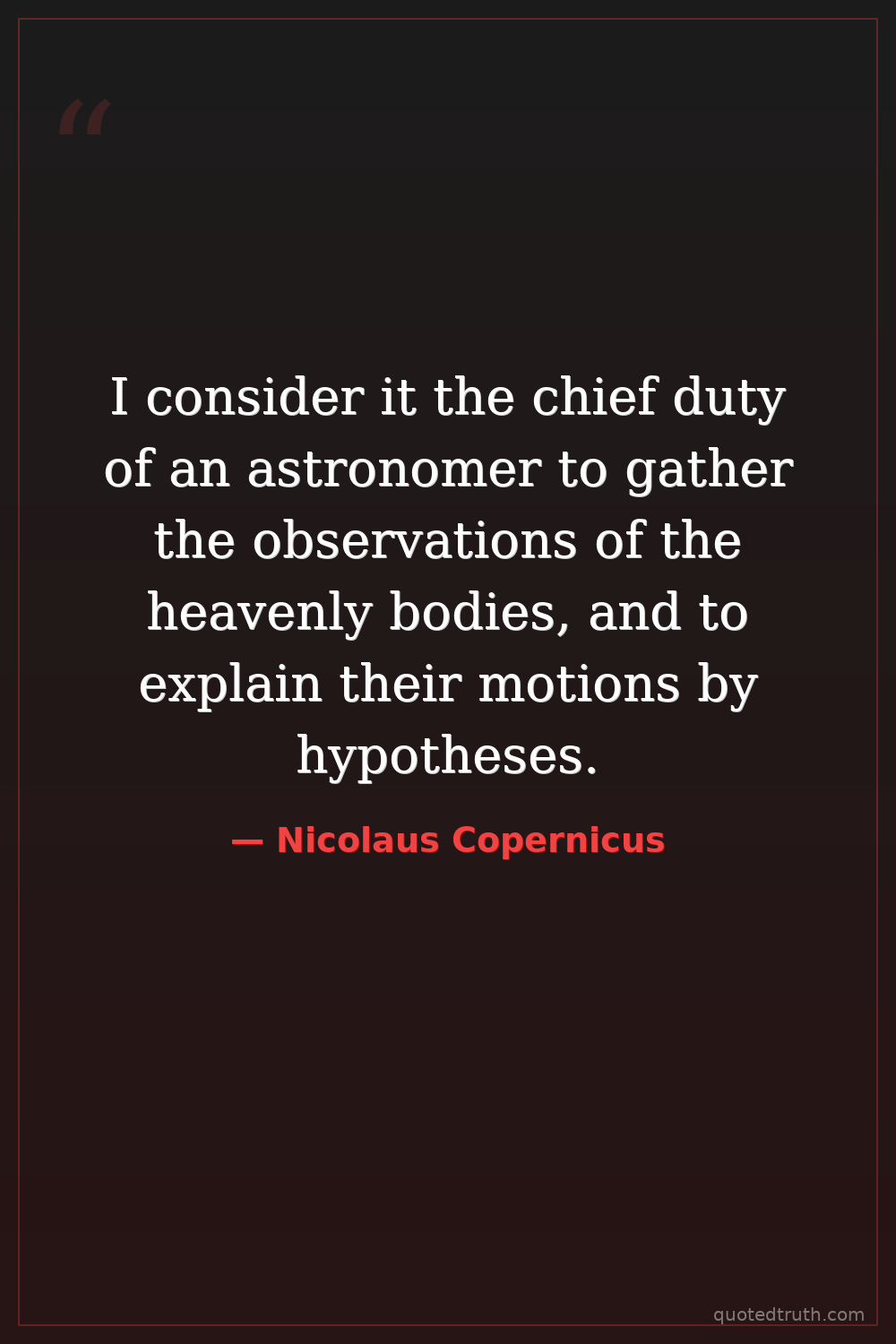I consider it the chief duty of an astronomer to gather the observations of the heavenly bodies, and to explain their motions by hypotheses.