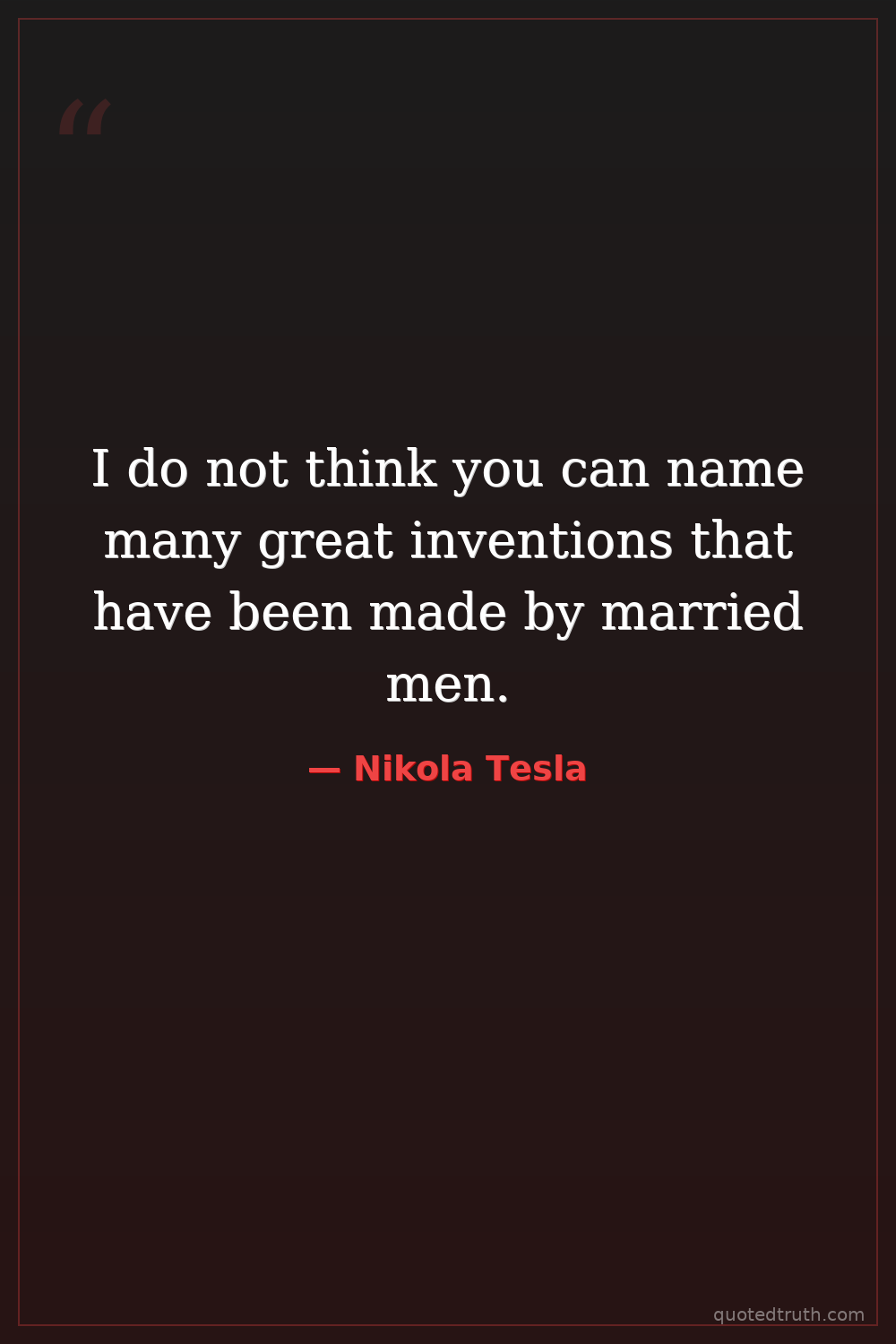 I do not think you can name many great inventions that have been made by married men.