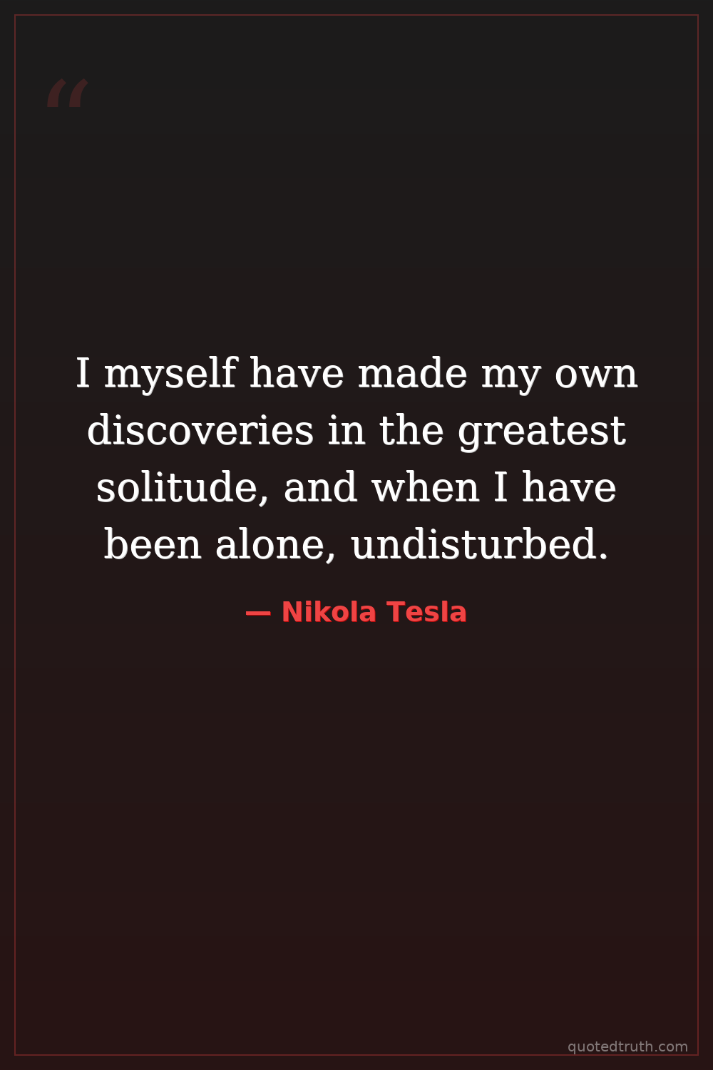 I myself have made my own discoveries in the greatest solitude, and when I have been alone, undisturbed.