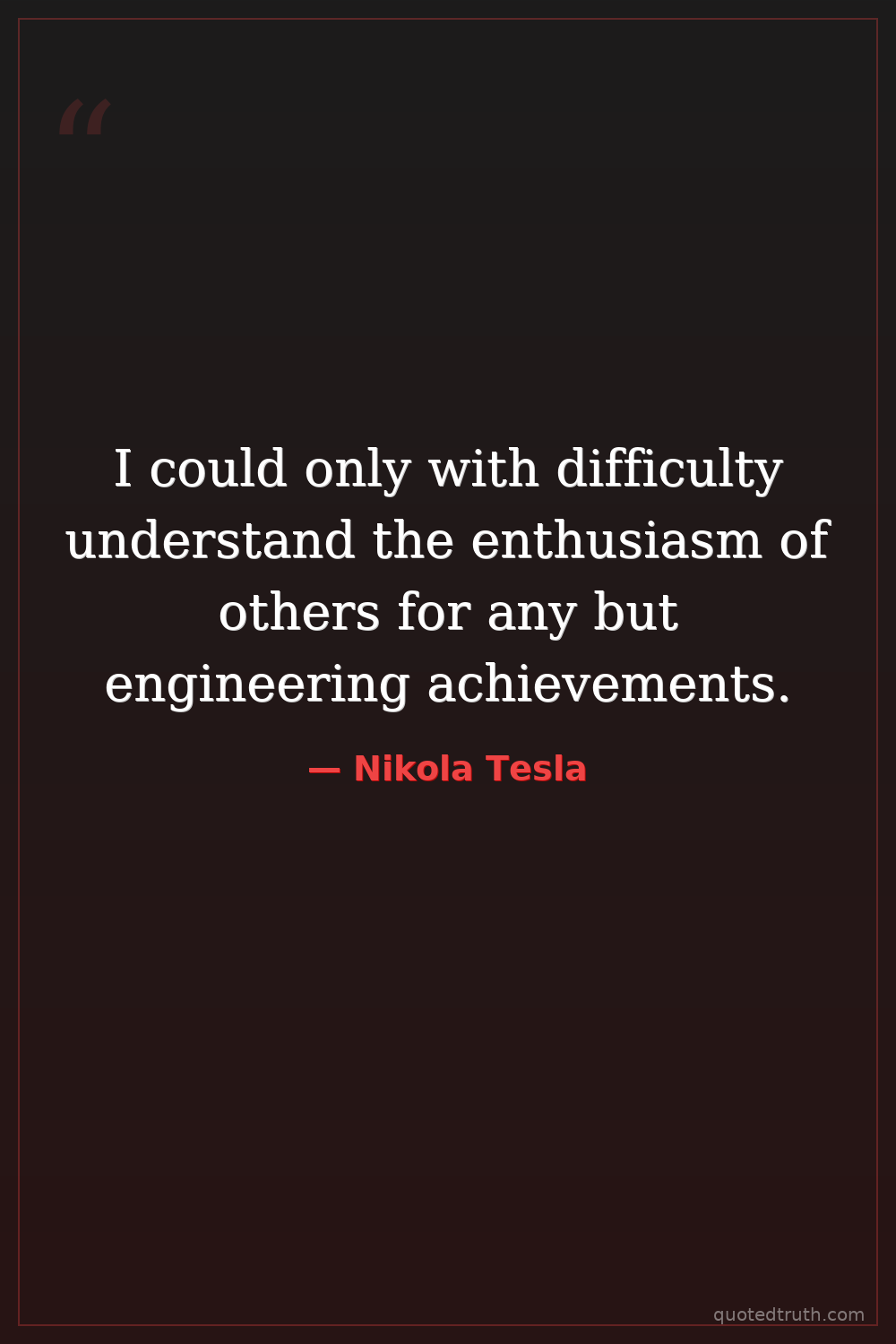 I could only with difficulty understand the enthusiasm of others for any but engineering achievements.