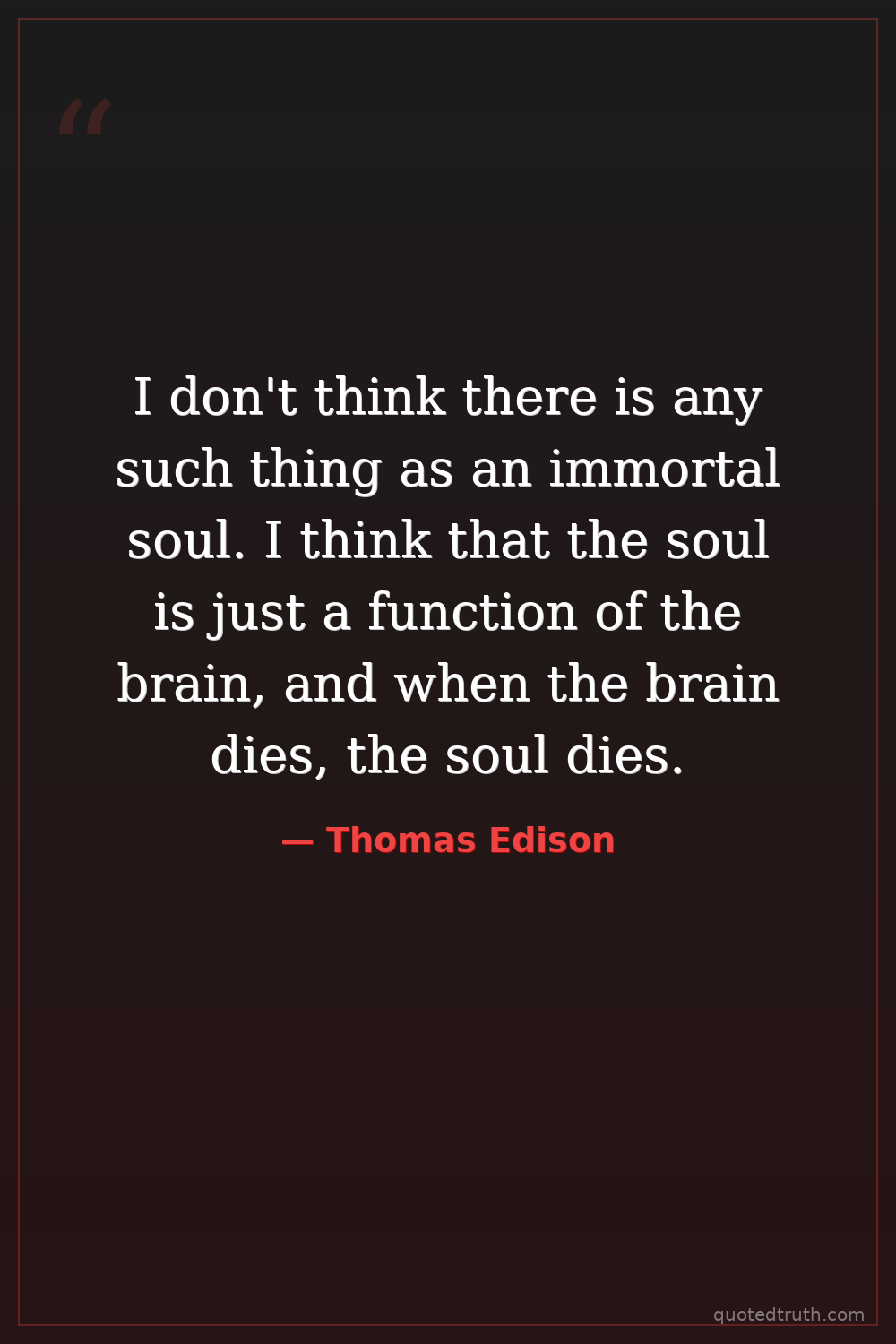 Strange & Unusual"I don't think there is any such thing as an immortal soul. I think that the soul is just a function of the brain, and when the brain dies, the soul dies. I think that the soul is just a collection of …"