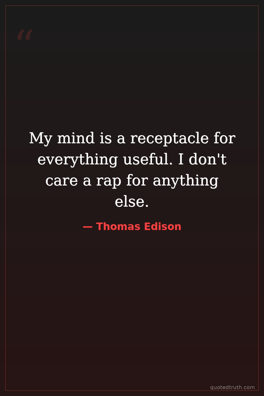 My mind is a receptacle for everything useful. I don't care a rap for anything else.