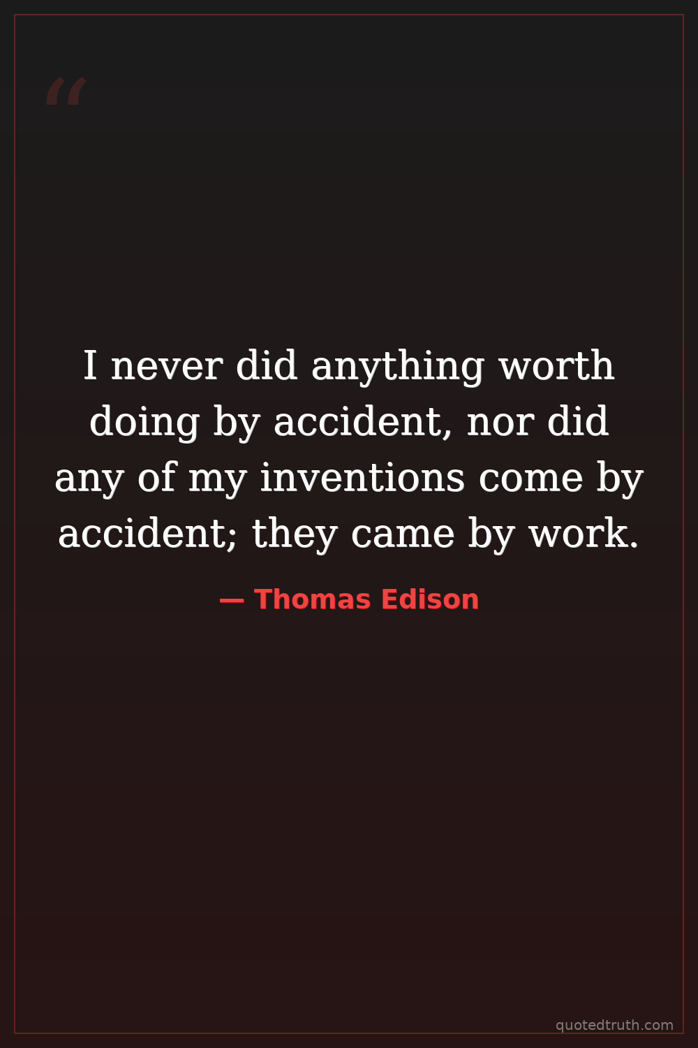 I never did anything worth doing by accident, nor did any of my inventions come by accident; they came by work.