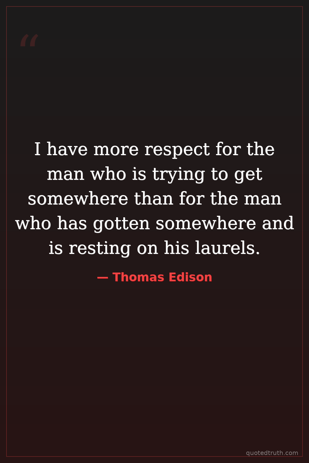 I have more respect for the man who is trying to get somewhere than for the man who has gotten somewhere and is resting on his laurels.