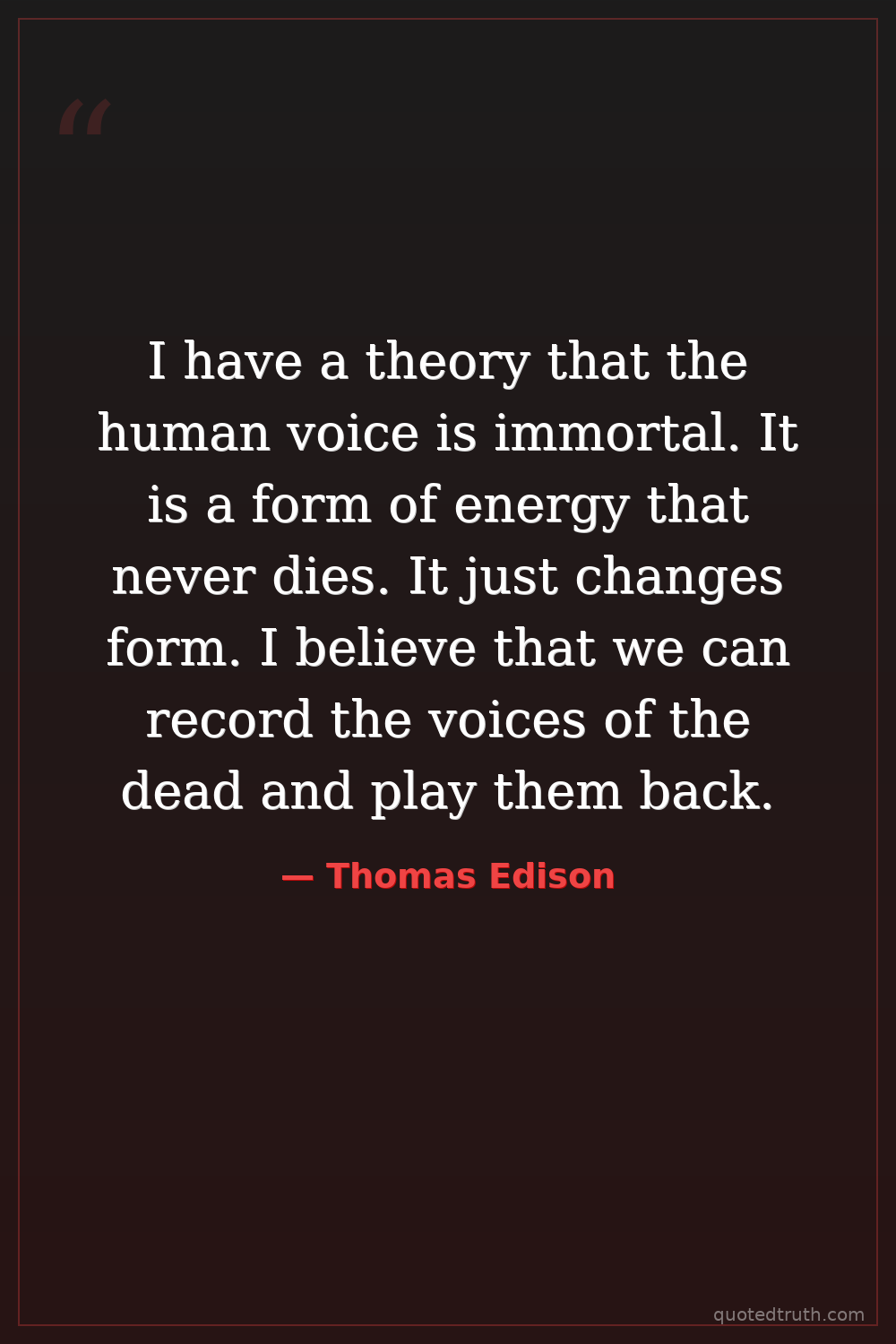 I have a theory that the human voice is immortal. It is a form of energy that never dies. It just changes form. I believe that we can record the voices of the dead and play them back.