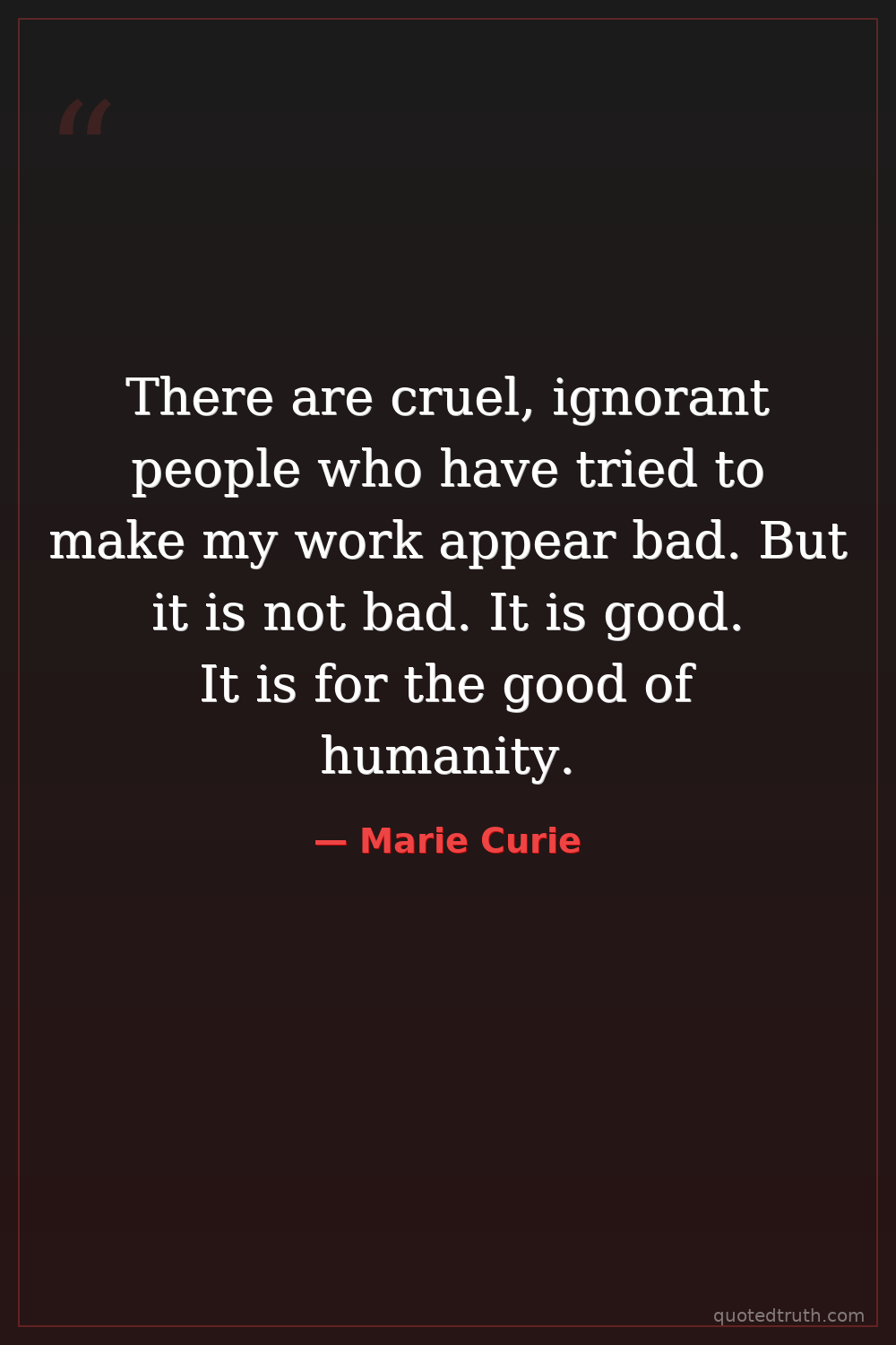 There are cruel, ignorant people who have tried to make my work appear bad. But it is not bad. It is good. It is for the good of humanity.
