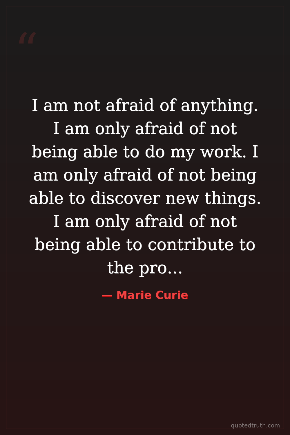 I am not afraid of anything. I am only afraid of not being able to do my work. I am only afraid of not being able to discover new things. I am only afraid of not being able to contribute to the progress of humanity. And I am proud of it.