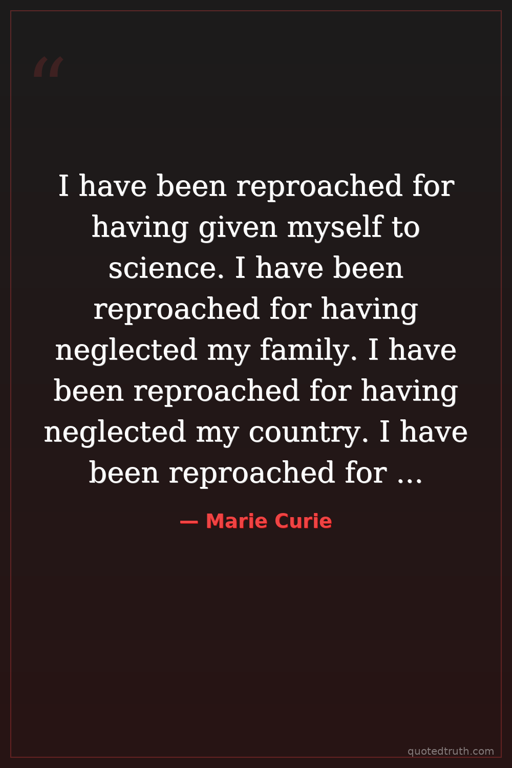 Marie Curie — "I have been reproached for having given myself to science. I have been reproache…"