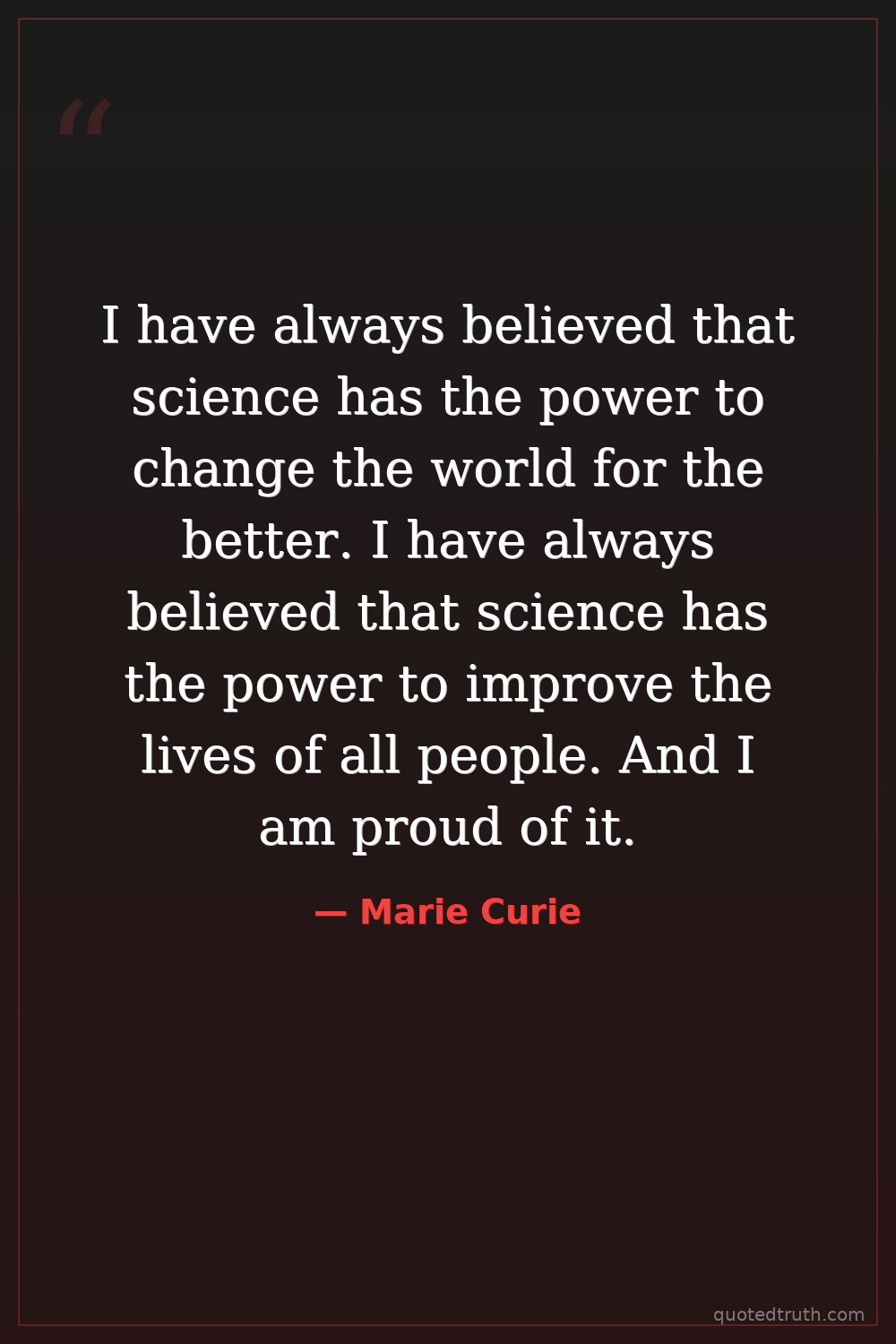 I have always believed that science has the power to change the world for the better. I have always believed that science has the power to improve the lives of all people. And I am proud of it.