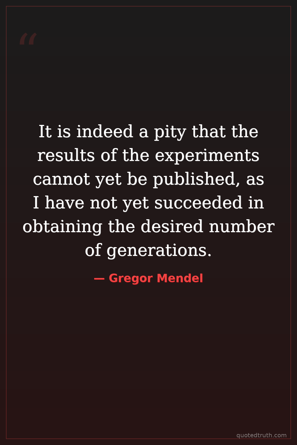 Philosophical"The monastery garden is my laboratory, and the pea plants are my teachers."