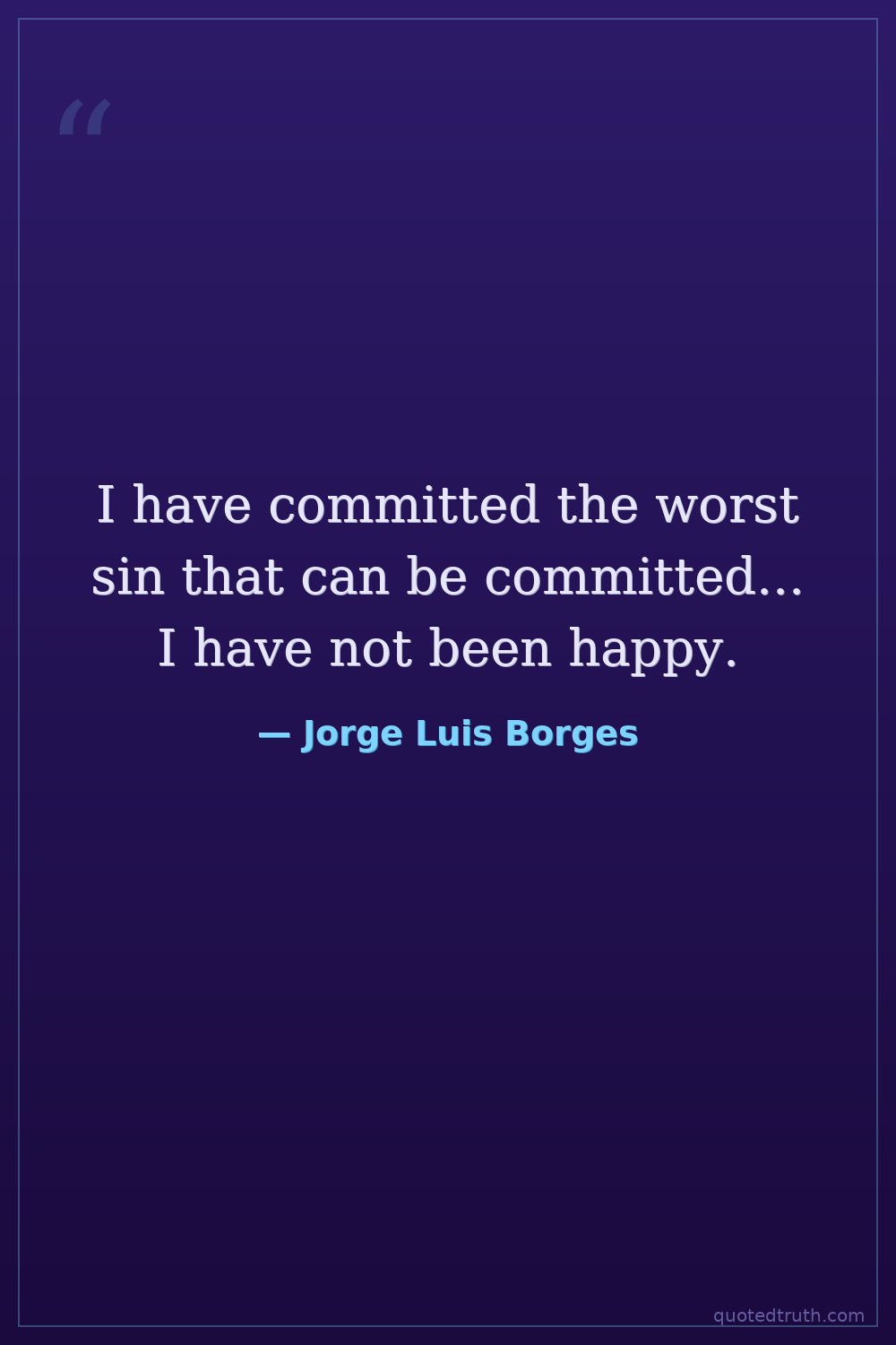 I have committed the worst sin that can be committed... I have not been happy.