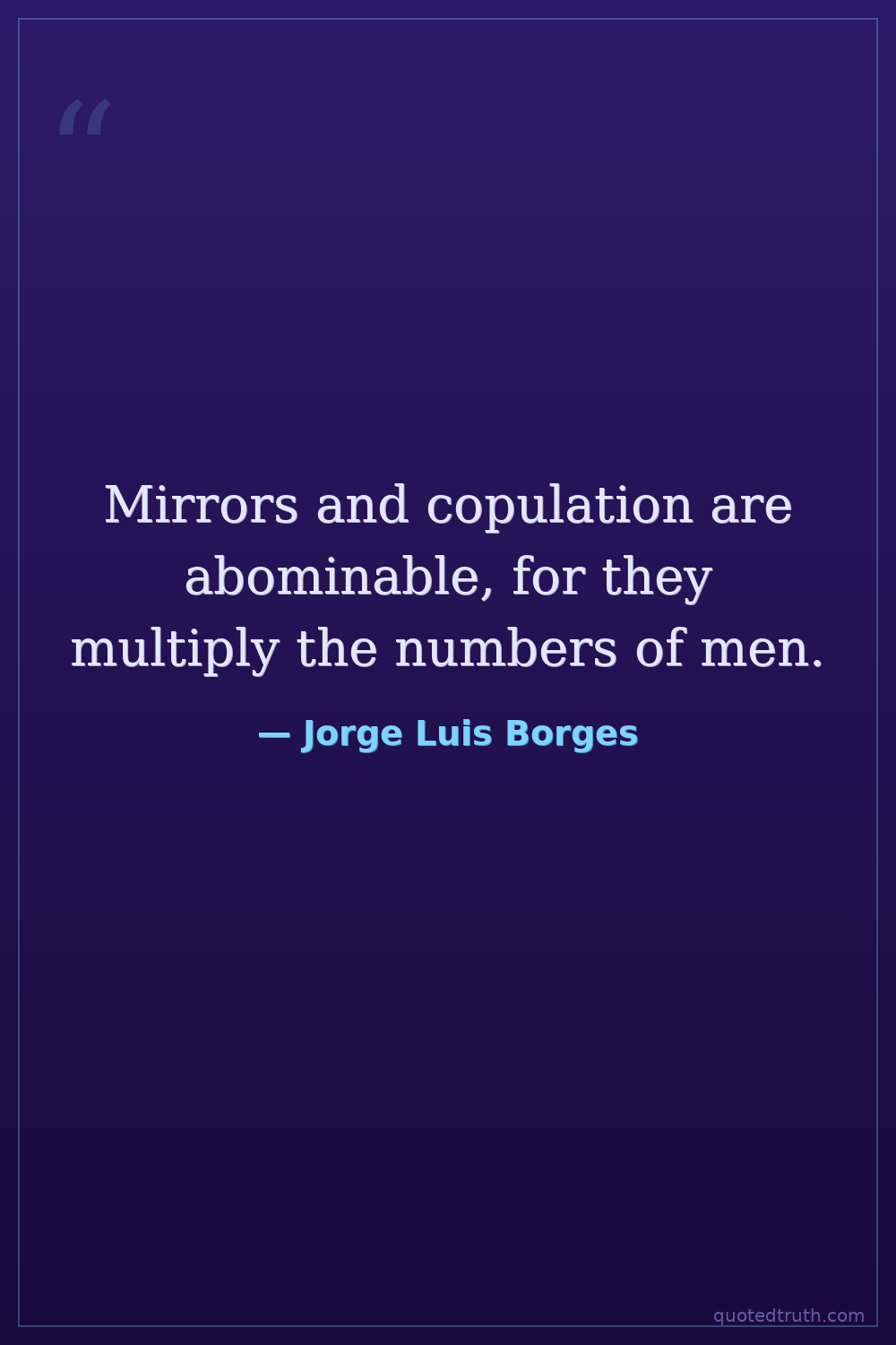 Mirrors and copulation are abominable, for they multiply the numbers of men.