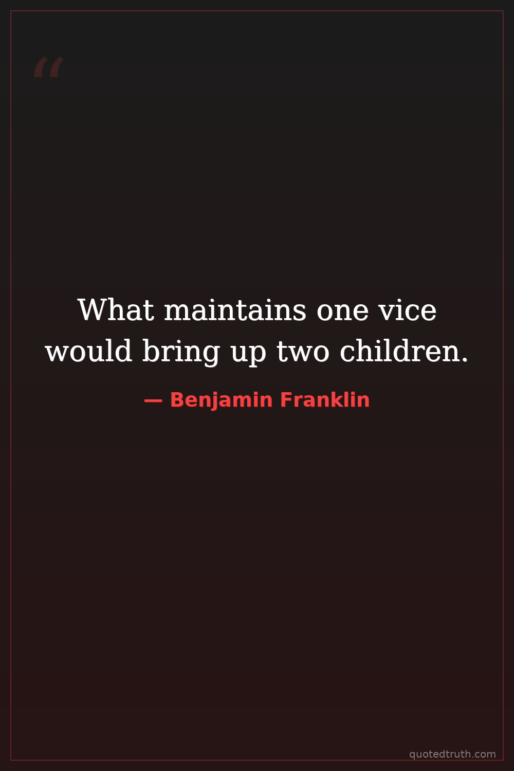 What maintains one vice would bring up two children.