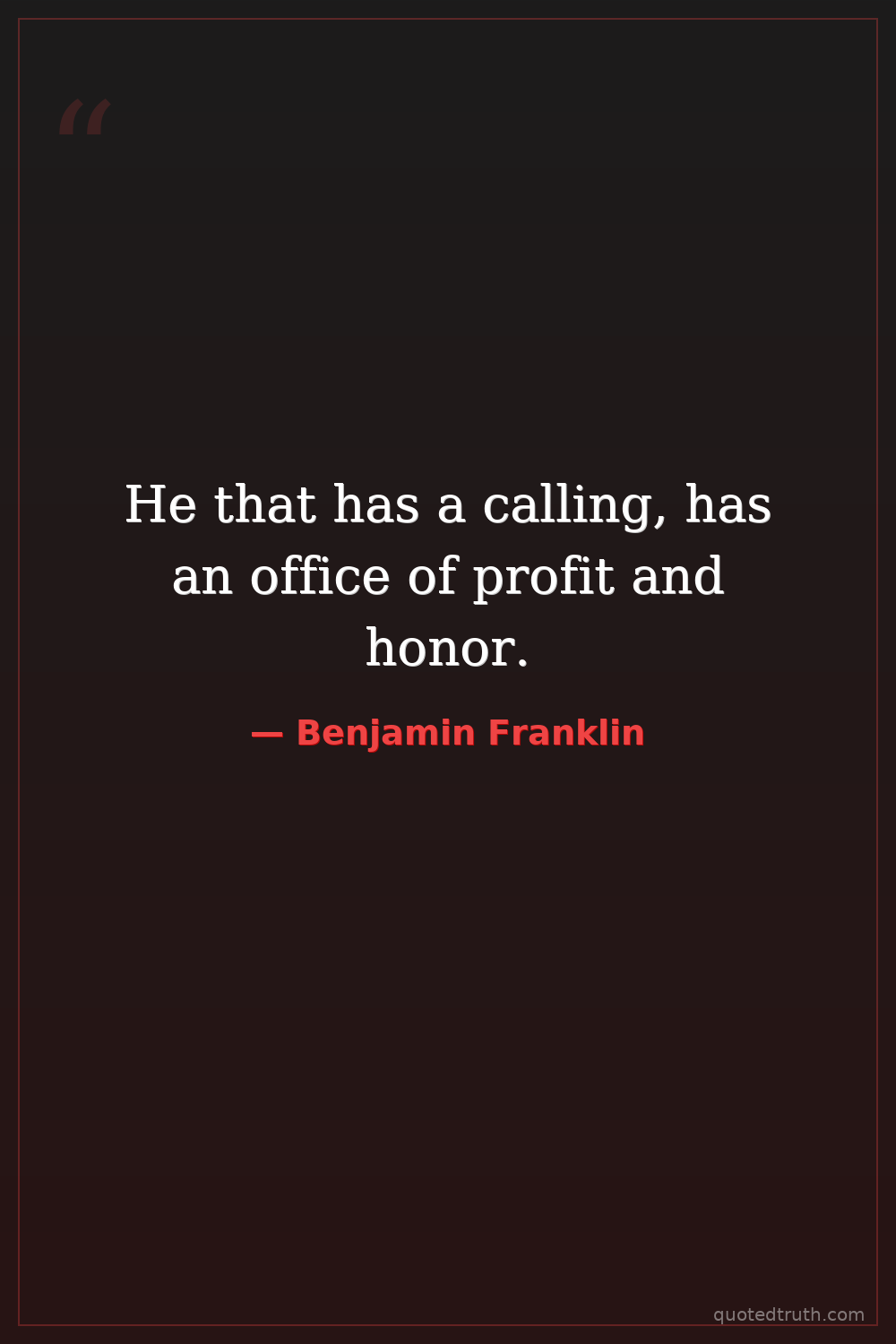 He that has a calling, has an office of profit and honor.
