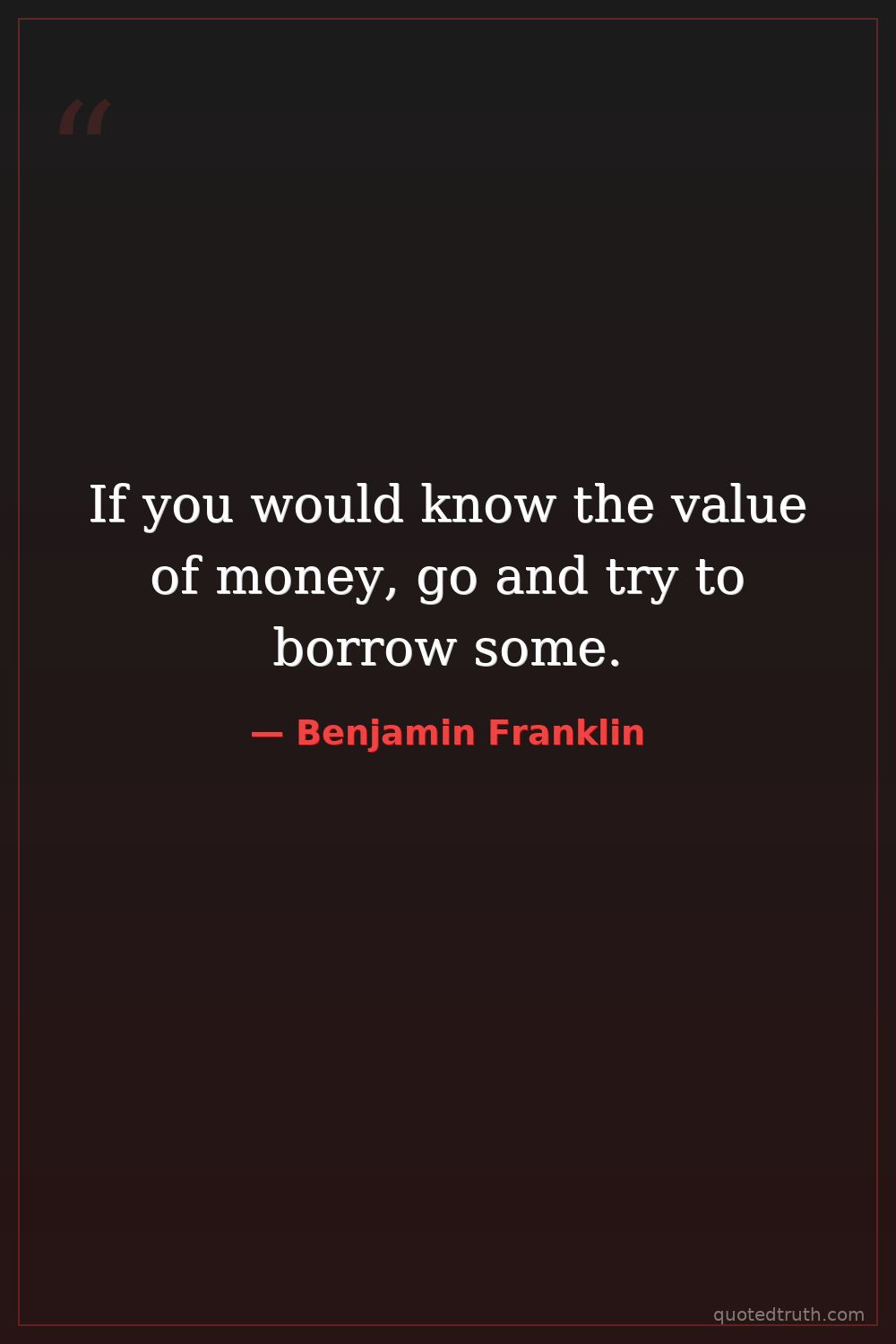 If you would know the value of money, go and try to borrow some.