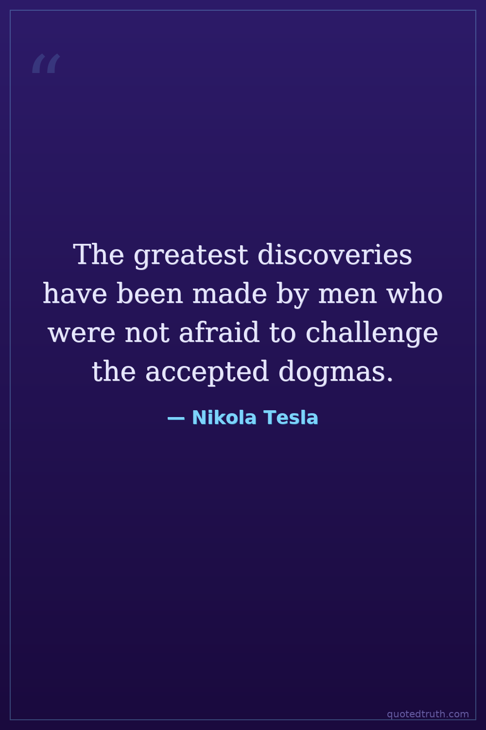 The greatest discoveries have been made by men who were not afraid to challenge the accepted dogmas.