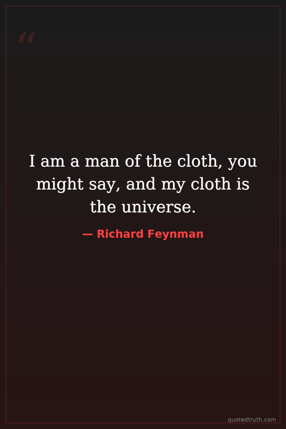 I am a man of the cloth, you might say, and my cloth is the universe.