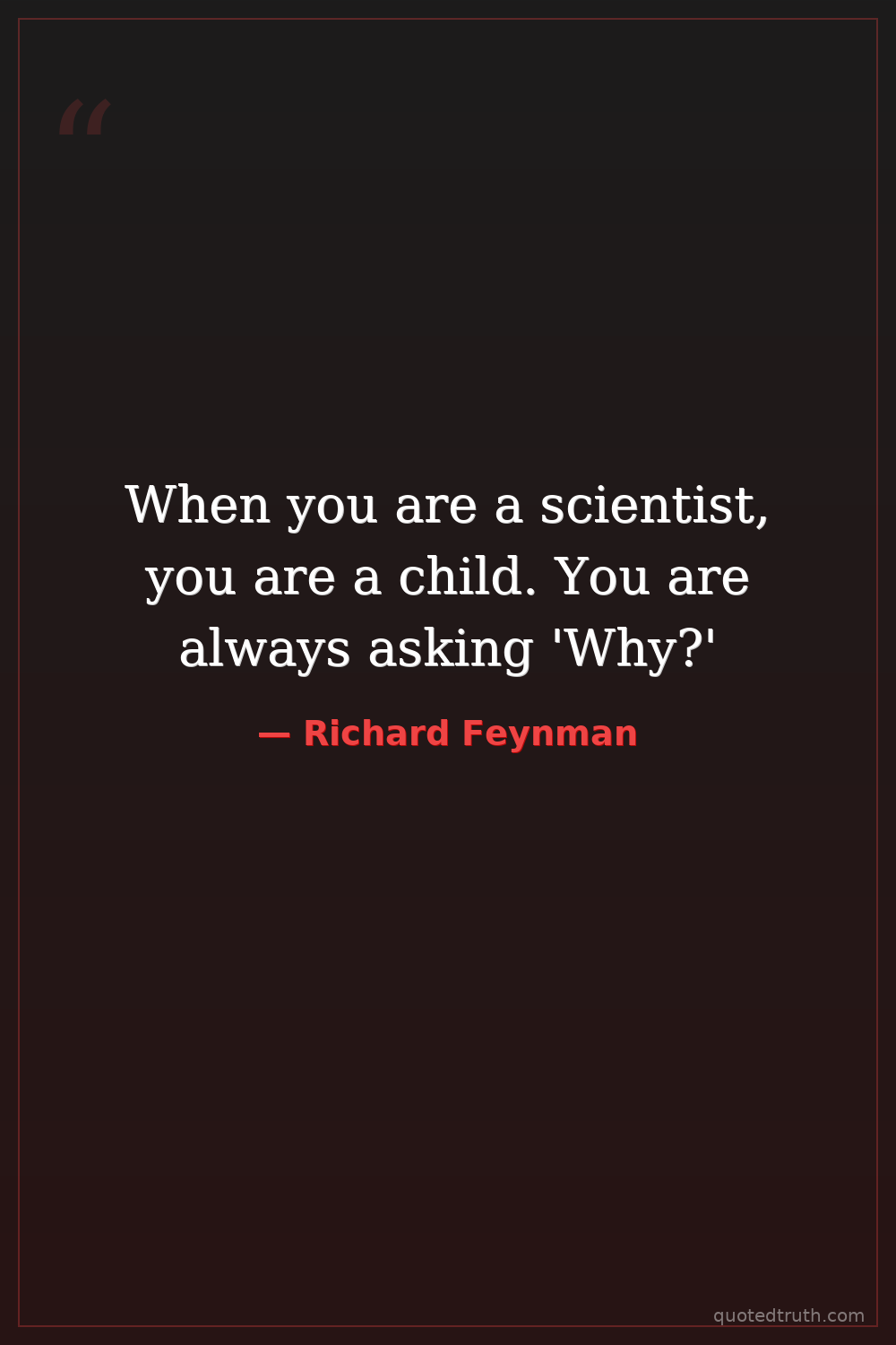 When you are a scientist, you are a child. You are always asking 'Why?'