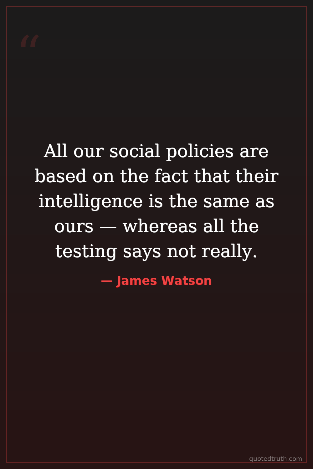 All our social policies are based on the fact that their intelligence is the same as ours — whereas all the testing says not really.