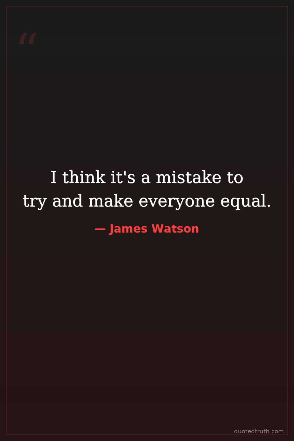 I think it's a mistake to try and make everyone equal.