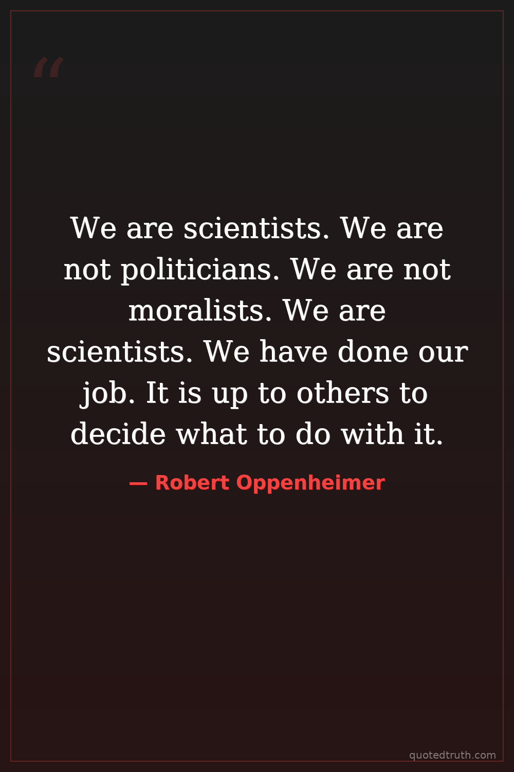 We are scientists. We are not politicians. We are not moralists. We are scientists. We have done our job. It is up to others to decide what to do with it.