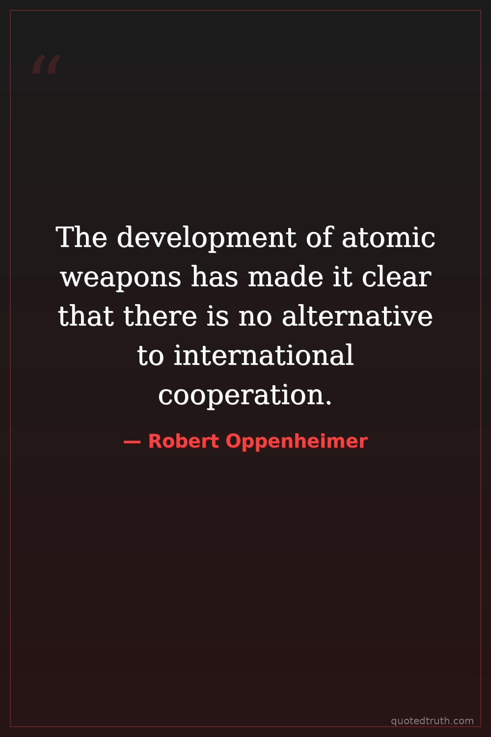 The development of atomic weapons has made it clear that there is no alternative to international cooperation.