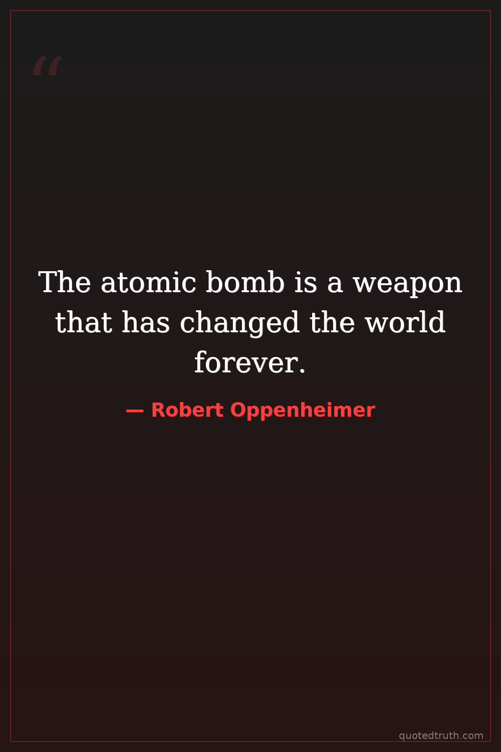 Controversial"The atomic bomb is a terrible weapon. It is a weapon that can bring about the destruction of civilization. And it is a weapon that must be controlled."