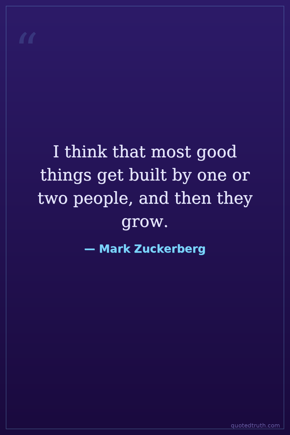 I think that most good things get built by one or two people, and then they grow.