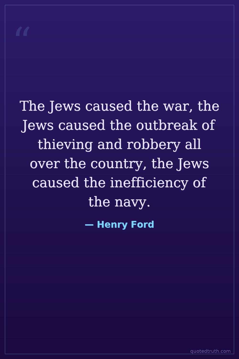 The Jews caused the war, the Jews caused the outbreak of thieving and robbery all over the country, the Jews caused the inefficiency of the navy.